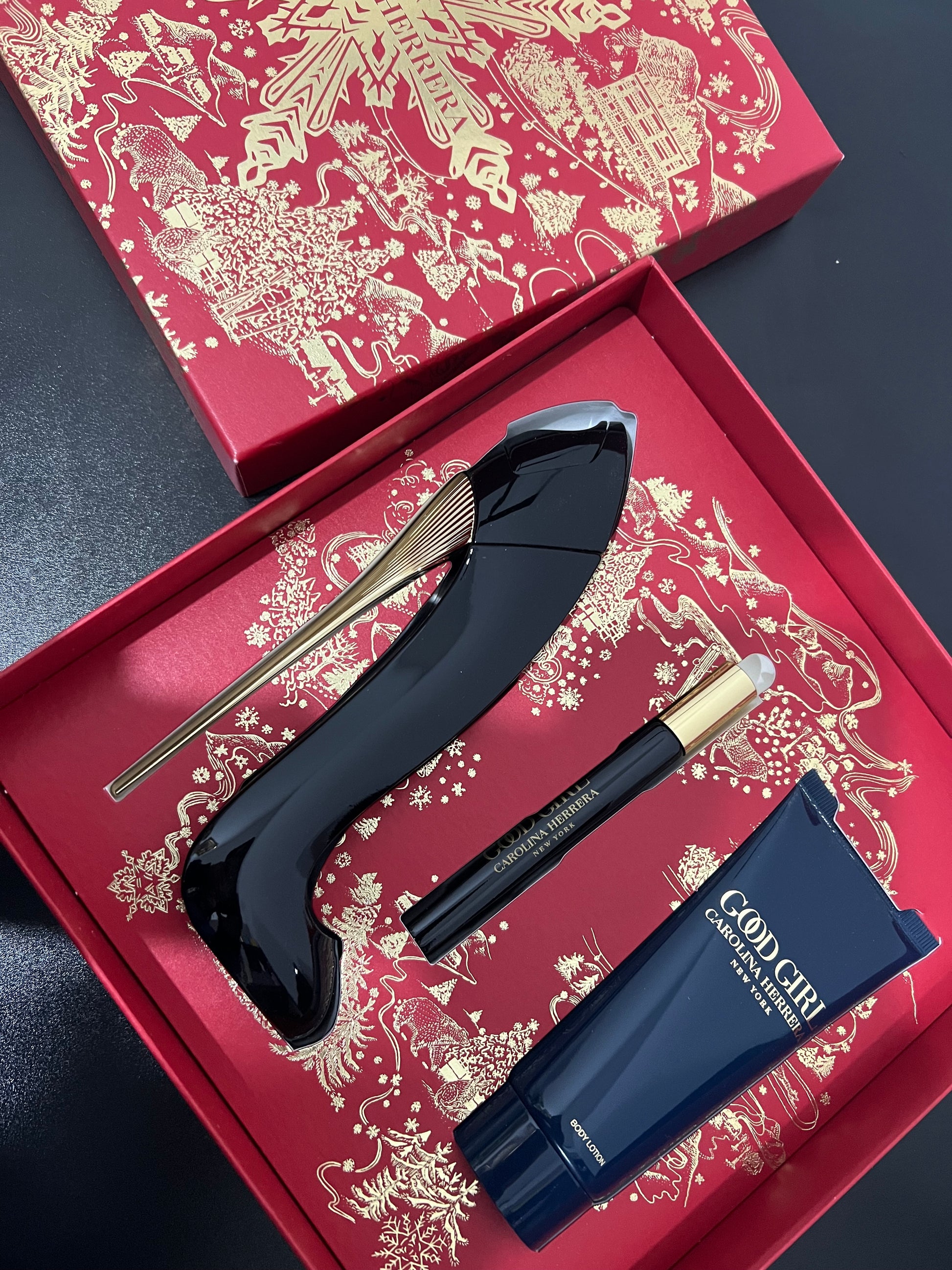 Estuche para dama good girl Carolina Herrera contiene: 3pz: edp 80ml + edp 10ml + loción corporal hidratante 100ml